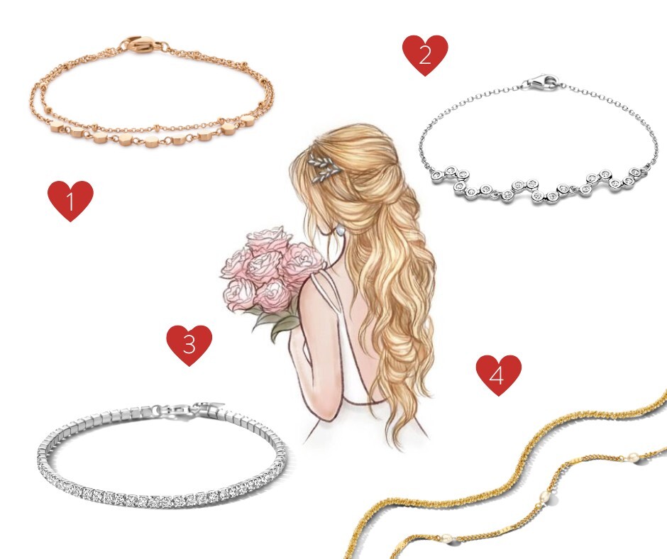Seule exception où ta robe de mariage a les manches longues, habiller tes poignets d’un ou plusieurs bracelets peut apporter la petite touche d’élégance en plus à ta tenue.